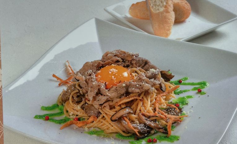 【季節のごちそう】 牛肉と茸のパスタ